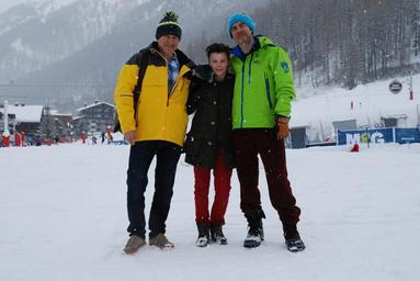 Keywords: alps valdesere ski vacation family winter france son father granfather grandson male smile happy people