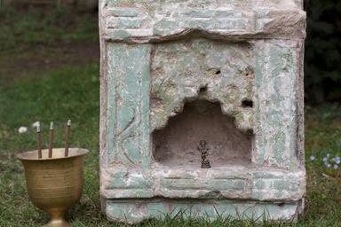 Keywords: altar temple stone niche india cup brass censer incense chalice hinduism ceremony meditation incense