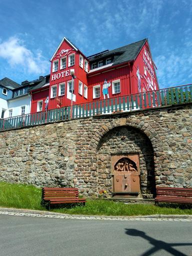 Keywords: altenberg bergmannsbrunnen hotel wall building house facade