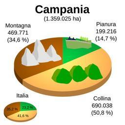 Keywords: Altimetria Campania.svg Ripartizione del territorio della regione per aree altimetriche Own 2008-03-16 Luigi Chiesa Own work all rights released Public domain Statistics of Italy Geography of Campania
