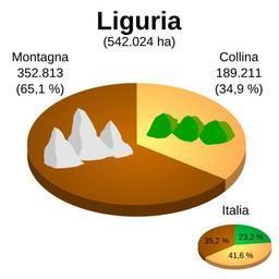 Keywords: Altimetria Liguria.svg Ripartizione del territorio della regione per aree altimetriche Own 2008-03-16 Luigi Chiesa Own work all rights released Public domain Statistics of Italy Geography of Liguria