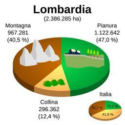 Keywords: Altimetria Lombardia.svg Ripartizione del territorio della regione per aree altimetriche Own 2008-03-16 Luigi Chiesa Own work all rights released Public domain Statistics of Italy Geography of Lombardy