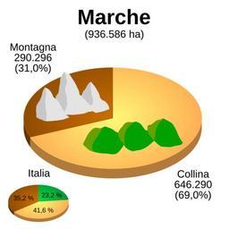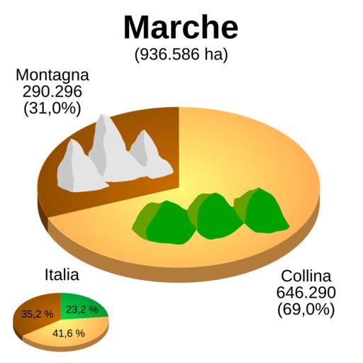 Keywords: Altimetria Marche.svg Ripartizione del territorio della regione per aree altimetriche Own 2008-03-16 Luigi Chiesa Own work all rights released Public domain Statistics of Italy Geography of Marche