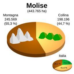 Keywords: Altimetria Molise.svg Ripartizione del territorio della regione per aree altimetriche Own 2008-03-16 Luigi Chiesa Own work all rights released Public domain Statistics of Italy Geography of Molise