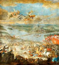 | Keywords: Altomonte Battle of Parkany.jpg Artwork Creator Martino Altomonte 1693-1695 oil canvas cm 886 782 Institution Lviv National Art Gallery accession number object history ProvenanceEvent 1693 commission John III Sobieski ProvenanceEvent 1972 transfer Lviv Art Gallery ProvenanceEvent 2008 “2011 transfer Warsaw credit line M Altomonte / Fecit signature FLAVIT SPIRITUS TUUS ET SUBMERSI SUNT QUASI PLUMBUM IN AQUIS VEHEMENTIBU Thou didst blow with thy wind the sea covered them they sank as lead in the mighty waters From the St Lawrence's Church in Zhovkva Żółkiew In 2008 “2011 the painting underwent thorough conservation in Warsaw Jerzy Petrus 2012 Kolegiata w Żółkwi - obrazy Martina Altomentego Cenne Bezcenne Utracone No 2 71 Apr-Jun 2012 PD-Art PD-old-100 DEFAULTSORT 1695; Battle of Parkany Martino Altomonte Polish Winged Hussars 17th-century paintings in the Lviv Art Gallery St Lawrence's Church Zhovkva Battle of Párkány 1690 oil on canvas paintings Old pictures of Esztergom Hungary in history paintings Historical images of Danube 17th-century paintings of cavalry in battle Old pictures of Å túrovo Paintings of the Danube |