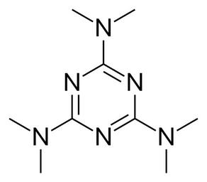 Keywords: Altretamine.svg A skeletal model of an Altretamine molecule 100 My own work 01-02-08 Benrr101 Altretamine