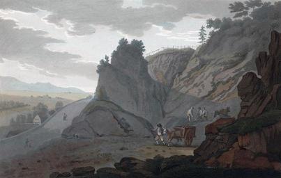 | Keywords: Alum Mine at Egeberg (JW Edy plate 56).jpg Artwork Creator John William Edy en Alum Mine at Egeberg No LVI ALUM MINE AT EGEBERG A high mountain called Egeberg is situated on the opposite side of the bay or harbour of Christiania at Opsloe by the church of which winds the great high road leading immediately up the ascent A little way on the right of the road is the alum mine belonging to John Collett Esq of Ulivold from which place he can by the assistance of a glass observe the operations of the workmen here employed It has the appearance of a stone quarry as the materials are wholly collected from its sides and the exterior is much stained with a ferruginous colour The whole hill is composed of a black aluminous schistus schistus niger This species of slate is in colour a deep bluish black hard heavy and moderately shining on the surface capable of receiving a polish and impervious to water; characters written on it are white; it does not strike fire with steel or at all suffer by acids It calcines to a red or pale brown colour which will not stand as a pigment The plates or laminæ in the quarries have a considerable dip to the south They are easily dug by the quarry men who are indifferent about their sizes or forms as small pieces are more convenient for calcination I did not see any collected for school slates nor did I observe upon them any impressions of fem plants insects or fishes ; which are not unusual in the schistus of Somersetshire Wales Yorkshire the Canton of Glaris in Switzerland Lapland c c It is easily removed from its native bed by the workmen with a pick-axe and spade and is then put into small carts and drawn by one horse to the extensive manufactory erected at the bottom of this hill This establishment is well adapted to the chemical operations which the slate is to undergo having the necessary apparatus furnaces for calcining cauldrons for boiling and pits for crystallizing The alum here produced is allowed to be of a good quality and vast quantities are annually shipped for exportation in small vessels from the wharf on the premises lvia 1 A little way up the road above the mine and nearly on a line with the house at its side is the spot from whence the view of Christiania No 49 was taken As you ascend the hill gradually becomes steeper and in a serpentine direction you creep up its side to the top from which it may be a mile and half through the forest to the spot where the view No 55 was taken To the sides of this hill the natives of Christiania exultingly lead all travellers who with themselves are never weary of viewing and pointing out the individual beauties of the scene and of repeating the anecdotes connected with it On one little fertile spot may be seen in the mmd's eye the half-famished army of Charles XII robbing and greedily devouring the scanty produce of the cranberry and juniper-bushes ; on another the triumphant entry of a favourite king or the return of a great patron to the country who are ever greeted with warm hearts Provisions and merchandize are continually passing in abundance to and from the city The long-missing ship entering the harbour the chearful bells and the palace and cottage are objects which harmonize peacefully with each other 1 of Norway Collapse bottom http //urn nb no/URN NBN no-nb_digibok_2011072910001 Boydell's picturesque scenery of Norway London 1820 Plate no 56 p 297 in scanned copy no-nb_digibok_2011072910001 PD-Art-100 John William Edy Boydell's picturesque scenery of Norway Ekeberg |