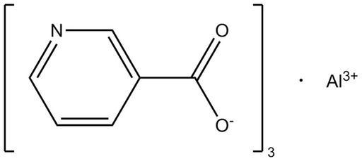 | Keywords: Aluminium Nicotinate.png en wikipedia 2011 July 15 This is the structure of Aluminium Nicotinate drawn with ChemDraw Note the three nicotinate anions coordinated with the aluminium cation en wikipedia Addihockey10 CommonsHelper 2007-08-31 Jeff Dahl wikipedia en Jeff Dahl Original upload log page en wikipedia Aluminium_Nicotinate png 2007-08-31 14 29 Jeff Dahl 821×367× 6886 bytes <nowiki>This is the structure of Aluminium Nicotinate drawn with ChemDraw Note the three nicotinate anions coordinated with the aluminium cation </nowiki> Aluminium compounds Cardiovascular drugs Carboxylate esters Nicotinates |