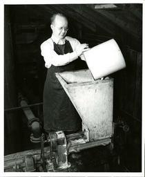 | Keywords: AluminumFromClay 001.jpg The final step in the production of alumina from clay in the pilot plant at the National Bureau of Standards is the conversion of hydrated aluminum chloride to alumina by calcination The aluminum chloride crystals are fed into the hopper at the top of the 20-foot Herreshoff furnace and are stirred constantly by rabble arms as they pass downward over the heated hearths National Institute of Standards and Technology 5/1/1947 National Institute of Standards and Technology PD-USGov-NIST The images in the Aluminum from Clay Photographic Collection are in the public domain and are not subject to copyright in the United States However please pay special attention to the individual works to make sure there are no copyright restrictions indicated Individual works may require securing other permissions from the original copyright holder Use of the images from NIST Digital Collections is not restricted but a statement of attribution is required Please use the following attribution statement National Institute of Standards and Technology Digital Collections Gaithersburg MD 20899 PD-USGov National Bureau of Standards National Institute of Standards and Technology |