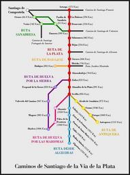 Keywords: AM04-RutasJacobeasPlata.jpg Croquis de los Caminos de Santiago en España Rutas de la Vía de la Plata Own 2007-07 almamía Dominio público Watermark removed Maps of Way of Saint James Vía de la Plata