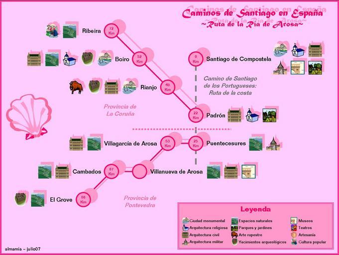 Keywords: AM-R04-CaminoSantiagoArosa.jpg Caminos de Santiago en España Ruta de la Ría de Arosa Own 2007-07 almamía dominio público Watermark Way of Saint James in Spain Maps of Way of Saint James