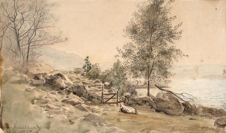 | Keywords: Amaldus Nielsen - Torskeskjaer, Budokken ved Skogsfjord (1858).jpg Artwork creator Amaldus Nielsen 1858 watercolour cm 20 34 accession number object history credit line exhibition history http //www arcadja com/auctions/de/private/nielsen_amaldus_clarin/kunstwerken/21115/0/ rvn 4 Grev Weddels Oslo 03 12 2012 lot 108 via ARCADJA auction results PD-old-auto-1923 1932 DEFAULTSORT Nielsen Amaldus Paintings by Amaldus Nielsen 19th-century oil on canvas paintings of landscapes in Norway 1850 paintings in Norway 19th-century landscape paintings of Norway |