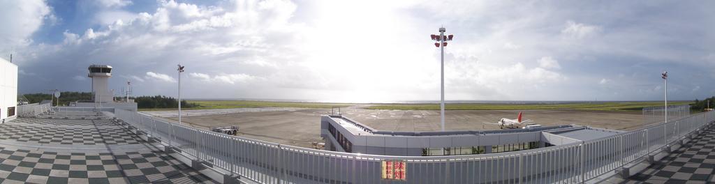 Keywords: Amami Airport2.jpg en Amami Airport in Wano Kasari-cho Amami-shi Kagoshima-ken Japan Composite panoramic photo ja 奄美空港ターミナルビル展 台より パノラマ合成写 Own Navian 2007-09-15 Amami Airport Panoramics in Japan Airport towers in Japan