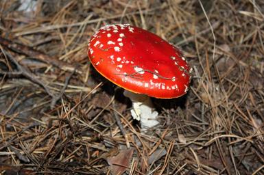 Keywords: amanita forest land mushroom autumn dry grass summer needles