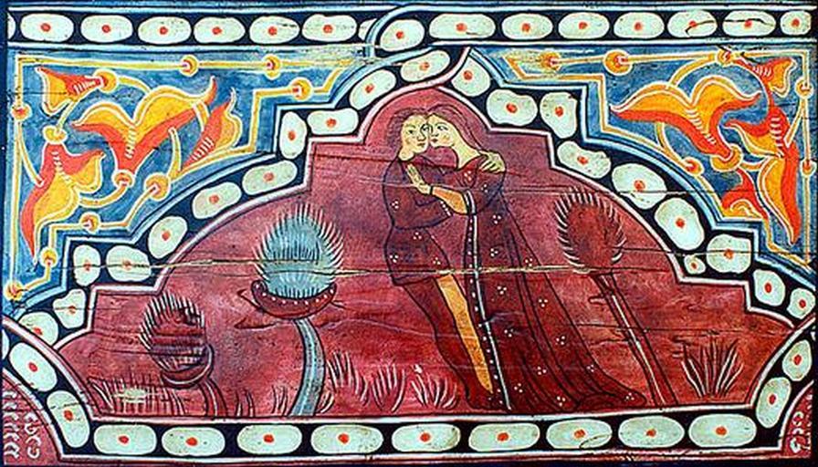 | Keywords: Amantes in Abadia Sto Domingo de Silos.png pt-br Amantes - detalhe de pintura no teto do Monastério de Santo Domingo de Silos Santo Domingo de Silos Burgos Espanha en Lovers - detail painting in the cloister ceiling of the Monastery of Santo Domingo de Silos Spain 1400 http //www ricardocosta com/artigo/entre-pintura-e-poesia-o-nascimento-do-amor-e-elevacao-da-condicao-feminina-na-idade-media author other versions PD-Art Uploaded with UploadWizard Cloister of the Monastery of Silos Medieval paintings |