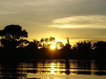 Keywords: amazon sunset river brazil sky landscape jungle water rainforest tropical