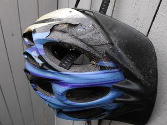 | Keywords: Amazor helmet after crash, closer view.jpg en Amazor bicycle helmet after a crash It occured during a race about 40-50 km/t 30mph on gravel road Head only suffered from a black eye and minor bruises 2012-11-04 12 43 15 own Otoomet The crash occured 2012-09-16 during Tartu MTB race cc-zero Damaged bicycle helmets Uploaded with UploadWizard |