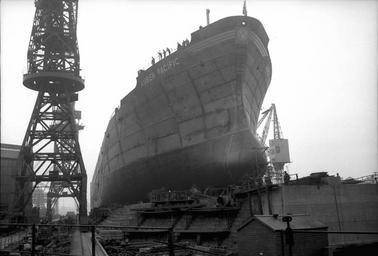 | Keywords: sunderland shipbuilding j.l. thompson & sons ltd jlthompsonsonsltd north sands sunderland northsandssunderland bulk carrier bulkcarrier shipyard industry cranes amber pacific amberpacific slipway ship launches shiplaunches blackandwhite monochrome outdoor black and white View of the bulk carrier 'Amber Pacific' ready for launch at the North Sands shipyard, Sunderland, 16 July 1969 (TWAM ref. DT.TUR/6/55325B). This set celebrates the achievements of the famous Sunderland shipbuilding firm Joseph L. Thompson & Sons. The company’s origins date back to 1846 when the firm was known as Robert Thompson & Sons. Robert Thompson senior died in 1860, leaving his second son Joseph Lowes Thompson in control. In 1870 the shipyard completed its last wooden vessel and was then adapted for iron shipbuilding. By 1880 the firm had expanded its operations over much of North Sands and in 1884 completed the construction of Manor Quay, which served as fitting out and repair facilities. For many years in the late nineteenth century the yard was the most productive in Sunderland and in 1894 had the fourth largest output of any shipyard in the world. The Depression affected the firm severely in the early 1930s and no vessels were launched from 1931 to 1934. However, during those years the company developed a hull design giving greater efficiency and economy in service. During the Second World War the prototype developed by Joseph L. Thompson & Sons proved so popular that it was used by the US Government as the basis of over 2,700 Liberty ships built at American shipyards between 1942 and 1945. After the War the North Sands shipyard went on to build many fine cargo ships, oil tankers and bulk carriers. Sadly the shipyard closed in 1979, although it briefly reopened in 1986 to construct the crane barge ITM Challenger. (Copyright) We're happy for you to share these digital images within the spirit of The Commons. Please cite 'Tyne & Wear Archives & Museums' when reusing. Certain restrictions on high quality reproductions and commercial use of the original physical version apply though; if you're unsure please email archives@twmuseums.org.uk View of the bulk carrier 'Amber Pacific' ready for launch at the North Sands shipyard, Sunderland, 16 July 1969 (TWAM ref. DT.TUR/6/55325B). This set celebrates the achievements of the famous Sunderland shipbuilding firm Joseph L. Thompson & Sons. The company’s origins date back to 1846 when the firm was known as Robert Thompson & Sons. Robert Thompson senior died in 1860, leaving his second son Joseph Lowes Thompson in control. In 1870 the shipyard completed its last wooden vessel and was then adapted for iron shipbuilding. By 1880 the firm had expanded its operations over much of North Sands and in 1884 completed the construction of Manor Quay, which served as fitting out and repair facilities. For many years in the late nineteenth century the yard was the most productive in Sunderland and in 1894 had the fourth largest output of any shipyard in the world. The Depression affected the firm severely in the early 1930s and no vessels were launched from 1931 to 1934. However, during those years the company developed a hull design giving greater efficiency and economy in service. During the Second World War the prototype developed by Joseph L. Thompson & Sons proved so popular that it was used by the US Government as the basis of over 2,700 Liberty ships built at American shipyards between 1942 and 1945. After the War the North Sands shipyard went on to build many fine cargo ships, oil tankers and bulk carriers. Sadly the shipyard closed in 1979, although it briefly reopened in 1986 to construct the crane barge ITM Challenger. (Copyright) We're happy for you to share these digital images within the spirit of The Commons. Please cite 'Tyne & Wear Archives & Museums' when reusing. Certain restrictions on high quality reproductions and commercial use of the original physical version apply though; if you're unsure please email archives@twmuseums.org.uk |