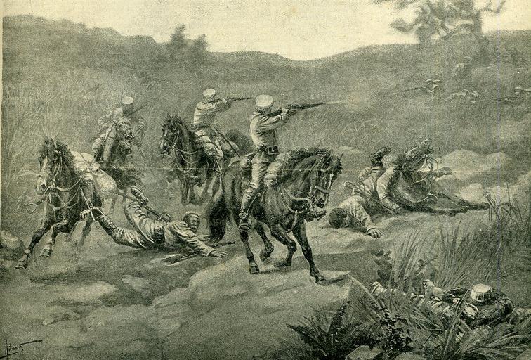 Keywords: Ambush.jpg Dans la Mandchourie Une patrouille russe tombant dans une embuscade یک گشت روس که در منچوری به کمین افتاده است Le Patriote Illustré 1904-10-30 loki11 PD-old Russo-Japanese War in October 1904 Military tactics Early 20th century cavalry before 1914 Soldiers |