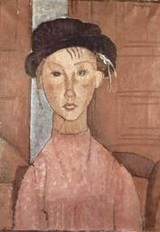 | Keywords: Amedeo Modigliani 020.jpg Artwork Q3929311 Creator Amedeo Modigliani 1918 oil canvas cm 65 45 private collection Paris accession number object history credit line modigliani signature upper right Yorck http //mail wikipedia org/pipermail/wikide-l/2005-April/012195 html PD-old-70 PD-Art-YorckProject Expressionist paintings of girls 1918 paintings Portrait paintings of girls 1918 Portrait paintings of women wearing hats Females with black headwear in art Paintings of women by Amedeo Modigliani Paintings of sitting girls Oil on canvas Paintings by Amedeo Modigliani in private collections Paintings in Paris Paintings with signatures |