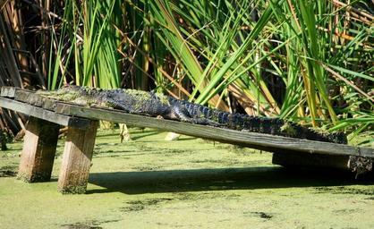 Keywords: american alligator reptile crocodilian sun bathing 3 5 meters swamp