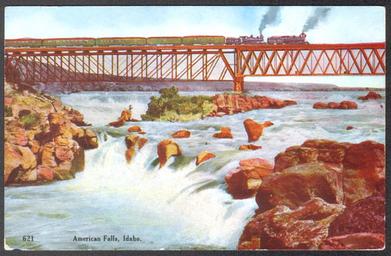 Keywords: vintagepostcard travel train bridge river idaho waterfall