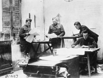| Keywords: American First World War Official Exchange Collection Q90331.jpg American First World War Official Exchange Collection<br/> Men of topographical Section Intelligence Division 1st Division drawing War Maps directly behind front lines Chepoix 14 May 1918 American official photographer First World War http //media iwm org uk/iwm/mediaLib//339/media-339987/large jpg Q 90331 205165374 This image was created and released by the Imperial War Museum on the http //www iwm org uk/corporate/privacy-copyright/licence IWM Non Commercial Licence This photograph was taken by American military personnel in their official duties and is public domain under US law consequently the following licence applies in addition to any other claim PD-USGov-Mil American First World War Official Exchange Collection photographs PD-USGov American First World War Official Exchange collection Images uploaded by Fæ |