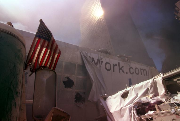 Keywords: outdoor American flag amid rubble following September 11th terrorist attack on World Trade Center, New York City. Sept. 11, 2001. Image. Retrieved from the Library of Congress, www.loc.gov/pictures/item/2002719372/. (Accessed September 03, 2016.) Call Number: LC-A05- F23 [item] [P&amp;P] Forms part of: Collection of unattributed photographs ... The 250 color slides made at the World Trade Towers in New York City on September 11, 2001, received from the New York District Attorney's office from an unattributed photographer, are in the public domain. Privacy and publicity rights may apply. These slides were received from the New York District Attorney's office with the photographer relinquishing any and all copyright and right of attribution. Therefore, the photographer's name will not be associated with these photographs. Note – This image has been digitally adjusted for one or more of the following: - fade correction, - color, contrast, and/or saturation enhancement - selected spot and/or scratch removal - cropped for composition and/or to accentuate subject matter - straighten image American flag amid rubble following September 11th terrorist attack on World Trade Center, New York City. Sept. 11, 2001. Image. Retrieved from the Library of Congress, www.loc.gov/pictures/item/2002719372/. (Accessed September 03, 2016.) Call Number: LC-A05- F23 [item] [P&P] Forms part of: Collection of unattributed photographs ... The 250 color slides made at the World Trade Towers in New York City on September 11, 2001, received from the New York District Attorney's office from an unattributed photographer, are in the public domain. Privacy and publicity rights may apply. These slides were received from the New York District Attorney's office with the photographer relinquishing any and all copyright and right of attribution. Therefore, the photographer's name will not be associated with these photographs. Note – This image has been digitally adjusted for one or more of the following: - fade correction, - color, contrast, and/or saturation enhancement - selected spot and/or scratch removal - cropped for composition and/or to accentuate subject matter - straighten image <em>American flag amid rubble following September 11th terrorist attack on World Trade Center, New York City<em>. Sept. 11, 2001. Image. Retrieved from the Library of Congress, <a href="http://www.loc.gov/pictures/item/2002719372/" rel="nofollow">www.loc.gov/pictures/item/2002719372/</a>. (Accessed September 03, 2016.)