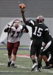 Keywords: american football quarterback pass defense pass rush competition high school football athletes football player game sport uniform passer throw throwing