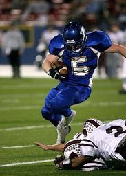 | Keywords: american football running back action running eluding tacklers offense ball football back sport run gridiron game player tailback headgear field play athlete athletic high school artificial turf football field competition competitor stadium agile young helmet |