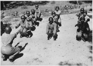 | Keywords: nara:arcid=535782 national archives nationalarchives women workout wartime 1940s forties 1944 nurses african-american africanamerican helmets uniforms exercise australia monochrome blackandwhite outdoor black and white Original Caption:"American Negro nurses, commissioned second lieutenants in the U.S. Army Nurses Corps, limber up their muscles in an early-morning workout during an advanced training course at a camp in Australia. The nurses, who already had extensive training in the U.S., will be assigned to Allied hospitals in advanced sectors of the southwest Pacific theater.", 02/1944 U.S. National Archives’ Local Identifier:208-N-22962 From:Series: Photographs of Allied and Axis Personalities and Activities, compiled 1942 - 1945 Created By:Office for Emergency Management. Office of War Information. Overseas Operations Branch. New York Office. News and Features Bureau. (12/17/1942 - 09/15/1945) Production Date:02/1944 Persistent URL: arcweb.archives.gov/arc/action/ExternalIdSearch?id=535782 Repository: Franklin D. Roosevelt Library, Hyde Park, NY Access Restrictions: Unrestricted Use Restrictions: Unrestricted Original Caption:"American Negro nurses, commissioned second lieutenants in the U.S. Army Nurses Corps, limber up their muscles in an early-morning workout during an advanced training course at a camp in Australia. The nurses, who already had extensive training in the U.S., will be assigned to Allied hospitals in advanced sectors of the southwest Pacific theater.", 02/1944 U.S. National Archives’ Local Identifier:208-N-22962 From:Series: Photographs of Allied and Axis Personalities and Activities, compiled 1942 - 1945 Created By:Office for Emergency Management. Office of War Information. Overseas Operations Branch. New York Office. News and Features Bureau. (12/17/1942 - 09/15/1945) Production Date:02/1944 Persistent URL: arcweb.archives.gov/arc/action/ExternalIdSearch?id=535782 Repository: Franklin D. Roosevelt Library, Hyde Park, NY Access Restrictions: Unrestricted Use Restrictions: Unrestricted |