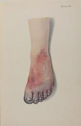 | Keywords: American Red Cross and Medical Research Committee, "An Atlas of Gas Poisoning" plate IV.jpg en Plate IV from An Atlas of Gas Poisoning by the American Red Cross and Medical Research Committee American Red Cross 1918 Plate title Gangrene of foot caused by vascular thrombosis from chlorine poisoning Text begins History of case Gassed by chlorine in 1915 under conditions which could not have induced frost-bite Severe dyspnoea from pulmonary oedema The American Red Cross published this guide for the American Expeditionary Force in World War I sometimes called the chemists ™ war The chromolithograph plates of characteristic injuries were intended to help inexperienced officers identify the type of gas used in attacks 1918 Institution Chemical Heritage Foundation object history exhibition history credit line http //www chemheritage org/ Chemical Heritage Foundation accession number http //othmerlib chemheritage org/ Roy G Neville Historical Chemical Library http //www chemheritage org/ Chemical Heritage Foundation Image downloaded with permission from the Chemical Heritage Foundation as part of the Wikipedian in Residence initiative CHF-cooperation PD-old-100 World War I Chemical weapons American Red Cross An Atlas of Gas Poisoning |