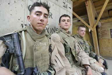 | Keywords: 'America's Battalion' makes midnight run to aid seven-year-old Iraqi girl DVIDS29878.jpg en From left to right 1st Lt Joshua R Rosales Navy Seaman Royce R Ross and Cpl Jared S Nelson came to the aid of a seven-year-old Iraqi girls who fell from a three-story building in Gharmah Iraq The three rushed her to Camp Fallujah's trauma center after Iraqi Police were unable to get her to a hospital in Fallujah The girl sustained a fractured wrist possible head and pelvic injuries Doctors medeveaced her to Coalition treatment facilities in Baghdad for further treatment Medical officials said the Marines' quick reaction possibly saved the life of the little girl 2006-09-09 Gunnery Sgt Mark Oliva https //www dvidshub net/image/29878 29878 2006-09-14 11 39 FALLUJAH IQ PD-USGov MEK Compound Fallujah Iraq Images from DoD uploaded by Fæ |