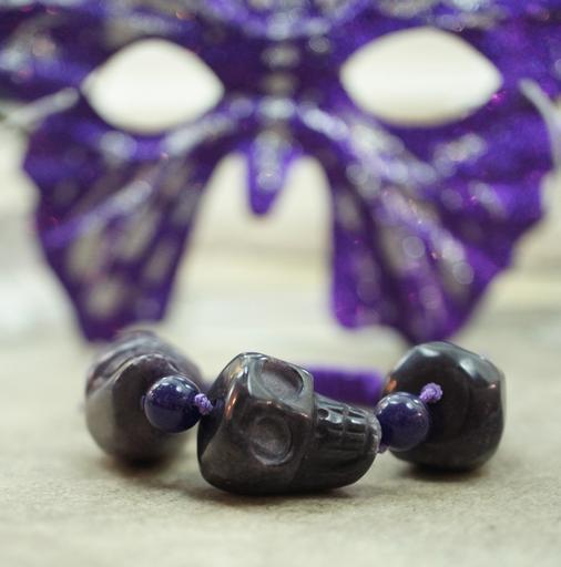 Keywords: amethyst skull bracelet stone beads cord handmade semiprecious skulls heads gem gemstone jewelry jewel jewellery mask butterfly