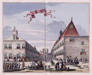 | Keywords: AMH-4769-KB Residence of the governor general within the walls of the castle at Batavia.jpg Artwork nl Huis van de gouverneur-generaal binnen het kasteel van Batavia nl Gezicht op het binnenplein van het Kasteel van Batavia waar de gebouwen van de VOC gevestigd waren Links het huis van de directeur-generaal rechts de woning en de dienstvertrekken van de gouverneur-generaal ofwel het gouvernement Middenachter is de kasteelkerk zichtbaar het heeft klassieke pilasters en een wapenschild Cf Westfries Museum inv nr 15241 05 De prent uit de Atlas Van Stolk inv nr top1037 en Koninklijke Bibliotheek inv nr 388 A 9 deel II na 208 is zwart-wit de prent uit de Koninklijke Bibliotheek Atlas van der Hagen Koninklijke Bibliotheek Den Haag Deel 4 inv nr 1049B13_29 is ingekleurd en View of the inner courtyard of Batavia Castle where the VOC buildings were located To the left the residence of the director general is shown while the residence of the governor general and company offices the 'gouvernement' are shown right In the centre to the rear the castle's chapel may be glimpsed with its classical pillars and coat of arms Cf Westfries Museum inv nr 15241 05 The print in the Atlas Van Stolk inv nr top1037 and Koninklijke Bibliotheek inv nr 388 A 9 deel II na p 208 is in black and white while the print from the Koninklijke Bibliotheek Atlas van der Hagen Koninklijke Bibliotheek The Hague Part 4 inv nr 1049B13_29 has been coloured in Atlas of Mutual Heritage kb http //www atlasofmutualheritage nl/en/object/ id 4769 Source at the Atlas of Mutual Heritage en Subjects Person fortification house church / parsonage banderole / cartouche / ornamentation government building / residence survey / view fauna nl Onderwerpen Persoon vesting huis / woonhuis kerk / pastorie banderol / cartouche / versiering gouvernementshuis / -gebouw overzicht / aanzicht fauna en Fort this image is related to a VOC fort called http //www atlasofmutualheritage nl/en/fort/ id 16 kasteel Batavia Inscription Goevernuers Huys Binnent Kasteel nl 1682 Creator Weduwe van Jacob van Meurs nl Anoniem / Anonymous graveur / etser Weduwe van Jacob van Meurs uitgever en Anoniem / Anonymous engraver / etcher Weduwe van Jacob van Meurs publisher Institution Koninklijke Bibliotheek nl koperdruk op papier en copperplate printing on paper Size cm 30 36 accession number 1049B13_029 PD-Art-100 Dutch East India Company 1682 Batavia Castle |
