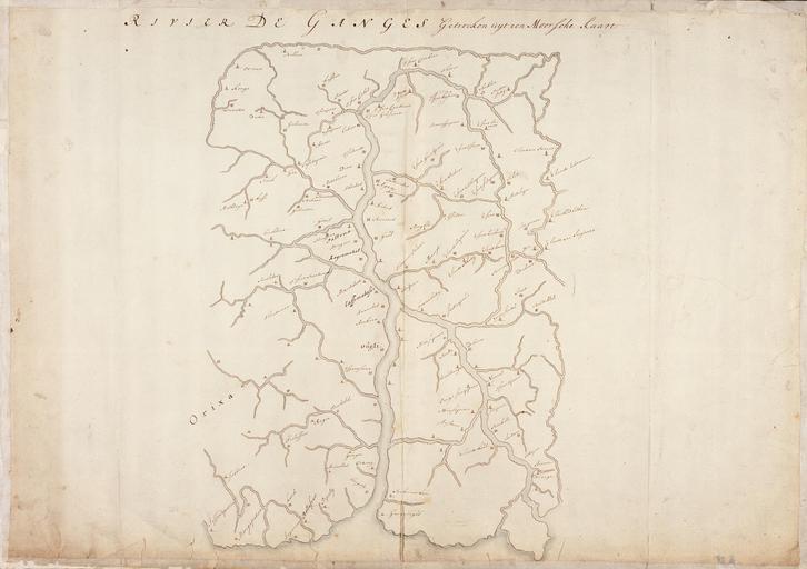 | Keywords: AMH-5160-NA Map of the Ganges river.jpg Artwork nl Kaart van de rivier Ganges nl Titel in catalogus Leupe Nationaal Archief Kaart van de Rivier de Ganges getrocken uyt een Moorsche Kaart Randen geplakt daardoor nummer rechtsboven onleesbaar Notities verso N2 56 en Title in the Leupe catalogue National Archives Kaart van de Rivier de Ganges getrocken uyt een Moorsche Kaart Edges have been pasted rendering the number top right illegible Notes on reverse N2 56 Atlas of Mutual Heritage na http //www atlasofmutualheritage nl/en/object/ id 5160 Source at the Atlas of Mutual Heritage - http //www gahetna nl/collectie/archief/inventaris/index/eadid/4 VEL/inventarisnr/259/level/file Source at the Nationaal Archief en Subjects chart / map / plan nl Onderwerpen plattegrond / kaart en Post this image is related to a VOC trading post called http //www atlasofmutualheritage nl/en/post/ id 321 Chunchura Inscription Rivier de Ganges Getrocken uyt een Moorsche Kaart nl between 1690 1743 Institution Nationaal Archief nl pen op papier en pen on paper Size cm 52 5 74 5 accession number NL-HaNA_4 VEL_259 old number VEL0259 PD-Art-100 Old maps of the Dutch East India Company |