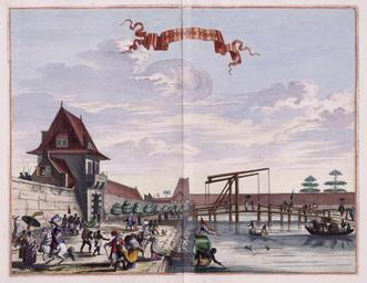 | Keywords: AMH-5642-KB View of the Nieuwe Poort at Batavia.jpg Artwork nl Gezicht op de Nieuwe Poort te Batavia nl Gezicht op de Nieuwe Poort te Batavia uit de Atlas van der Hagen Koninklijke Bibliotheek Den Haag Deel 4 Cf Koninklijke Bibliotheek inv nr 388 A 9 deel II na p 194 en Westfries Museum 15241 10 beide zwart-wit en View of the Nieuwe Poort at Batavia taken from the Atlas van der Hagen Koninklijke Bibliotheek The Hague part 4 Cf Koninklijke Bibliotheek inv nr 388 A 9 deel II na p 194 and Westfries Museum 15241 10 both in black white Atlas of Mutual Heritage kb http //www atlasofmutualheritage nl/en/object/ id 5642 Source at the Atlas of Mutual Heritage en Subjects Asians Africans gate ship / vessel building survey / view European Person banderole / cartouche / ornamentation fauna bridge nl Onderwerpen Aziaten Afrikanen poort schip / vaartuig gebouw overzicht / aanzicht Europeanen Persoon banderol / cartouche / versiering fauna brug en Post this image is related to a VOC trading post called http //www atlasofmutualheritage nl/en/post/ id 328 Jakarta Inscription DE NIEUWE POORT nl 1682 Creator Weduwe van Jacob van Meurs nl Weduwe van Jacob van Meurs uitgever en Weduwe van Jacob van Meurs publisher Institution Koninklijke Bibliotheek nl koperdruk op papier en copperplate printing on paper Size cm 27 36 accession number 1049B13_021 PD-Art-100 Dutch East India Company 1682 |