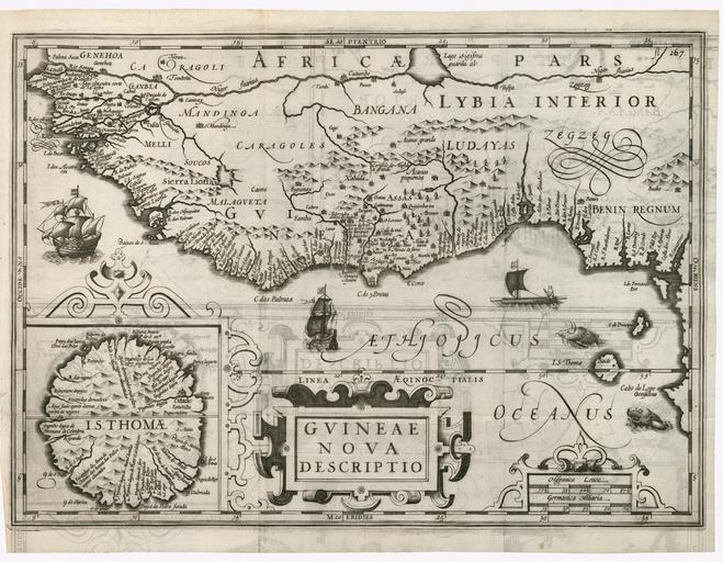 | Keywords: AMH-6460-KB Map of the African Gold and Slave coast.jpg Artwork nl Kaart van de Afrikaanse Goud- en Slavenkust nl Kaart van de Afrikaanse Goudkust Cartouche Guinea nova descriptio Rechtsboven fl 267 Inzet links onder Kaart van het eiland Sao Thomé en Map of the African Gold Coast Cartouche bearing the inscription Guinea nova descriptio Top right fl 267 Inset bottom left Map of the island of Sao Thomé Atlas of Mutual Heritage kb http //www atlasofmutualheritage nl/en/object/ id 6460 Source at the Atlas of Mutual Heritage en Subjects banderole / cartouche / ornamentation ship / vessel fauna chart / map / plan nl Onderwerpen banderol / cartouche / versiering schip / vaartuig fauna plattegrond / kaart en Post this image is related to a WIC trading post called http //www atlasofmutualheritage nl/en/post/ id 682 Elmina Inscription Guinea Nova Descriptio nl 1614 nl Anoniem / Anonymous graveur / etser en Anoniem / Anonymous engraver / etcher Institution Koninklijke Bibliotheek nl gravure op papier en engraving on paper Size cm 33 5 26 5 accession number 496 D 12 deel II na p 266 PD-Art-100 Maps of the West-Indische Compagnie 1614 Slave Coast |