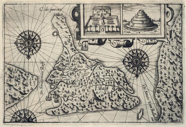 Keywords: AMH-6657-KB Map of the island of Bali.jpg Artwork nl Kaart van het eiland Bali nl Kaart van het eiland Bali Van de gebouwen op de twee inzetjes is het linker gebouw mogelijk het paleis van de koning het rechter gebouw is een stupa een boeddhistisch bouwwerk Het linker eiland is Lombok het rechter Java I Balij De Strate van Ballabuam C de porcus De Strate van Balij en Map of the island of Bali Of the buildings depicted in the two insets the left might be the king's palace while the building on theright is a stupa a Buddhist construction The island on the left is Lombok that on the right is Java l Balij -De Strate van Ballabuam C de porcus De Strate van Balij Atlas of Mutual Heritage kb http //www atlasofmutualheritage nl/en/object/ id 6657 Source at the Atlas of Mutual Heritage en Subjects fence / kraal compass / dial ship / vessel chart / map / plan church / parsonage building banderole / cartouche / ornamentation flora nl Onderwerpen omheining / kraal kompas / windroos schip / vaartuig plattegrond / kaart kerk / pastorie gebouw banderol / cartouche / versiering flora circa 1598 Creator Cornelis Claesz nl Anoniem / Anonymous graveur / etser Cornelis Claesz uitgever en Anoniem / Anonymous engraver / etcher Cornelis Claesz publisher Institution Koninklijke Bibliotheek nl gravure op papier en engraving on paper Size cm 22 15 accession number 1700 C 2 voor p 66 PD-Art-100 Maps of the Dutch East India Company - Indonesia 1598 |