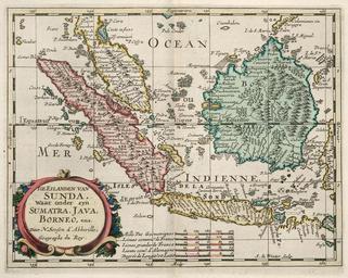 | Keywords: AMH-6668-KB Map of Java, Sumatra, Borneo and Malaysia.jpg Artwork nl Kaart van Java Sumatra Borneo en Maleisië nl Kaart van Java Sumatra Borneo en Maleisië De Eilanden van Sunda Waar onder zyn Sumatra Java Borneo enz en Map of Java Sumatra Borneo and Malaysia De Eilanden van Sunda Waar onder zyn Sumatra Java Borneo enz Atlas of Mutual Heritage kb http //www atlasofmutualheritage nl/en/object/ id 6668 Source at the Atlas of Mutual Heritage en Subjects banderole / cartouche / ornamentation chart / map / plan nl Onderwerpen banderol / cartouche / versiering plattegrond / kaart en Post this image is related to a VOC trading post called http //www atlasofmutualheritage nl/en/post/ id 317 Banten Inscription De Eilanden van Sunda Waar onder zyn Sumatra Java Borneo enz author Door N Sanson d'Abbeville Geographe du Roy / A de Winter sculp nl circa 1705 Creator A d' Winter Creator Nicolas Sanson d'Abbeville Creator François Halma nl A d' Winter graveur / etser Nicolas Sanson d'Abbeville landmeter / kaartenmaker François Halma uitgever en A d' Winter engraver / etcher Nicolas Sanson d'Abbeville land surveyor / mapmaker François Halma publisher Institution Koninklijke Bibliotheek nl ingekleurde gravure op papier en coloured engraving on paper Size cm 25 5 20 5 accession number 368 E 1 deel III na p 156 PD-Art-100 Maps of the Dutch East India Company - Indonesia Old maps of the Dutch East India Company - Malaysia 1705 |