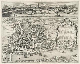 | Keywords: AMH-6963-KB Bird's eye map and view of Goa.jpg Artwork nl Vogelvlucht en aanzicht van Goa nl Vogelvlucht en aanzicht van Goa De vogelvlucht is gebaseerd op de afbeelding in Van Linschoten 'Itinerario voyage ofte schipvaert van Jan H van Linschoten' Amsterdam 1596 p 42 Koninklijke Bibliotheek inv nr 1702 B 4 deel I Het aanzicht is gekopieerd in Koninklijke Bibliotheek inv nr 227 K 1 deel 3 na p 62 Op de kade worden olifanten gebruikt als lastdier Legenda 1 A Madre de Deus / 2 S Joseph / 3 Weg na Dangin / 4 S Doms / 5 N Sig de Monte / 6 S Amara / 7 S Bras / 8 Houtmarckt / 9 Grote Vischmarckt / 10 Die Waag / 11 Paleys van Vice Rey / 12 Plaets van Vice Rey / 13 Galeye plaets / 14 Timmerwerff / 15 S Catharyn / 16 S Francisci marckt / 17 S Marco / 18 de Burse / 19 Misericordia / 20 N S de Serra / 21 Terros dos Gallos / 22 Rua d N S d monte / 23 S Paulo / 24 S Thomae novo / 25 weg na S Jacob / 26 Spital dos pop / 27 Ertsbisschops Pal / 28 N S da Graça / 29 S Antoni Plats / 30 N S da Lu / 32 S Andreas / 32 S Matthaeus / 33 S Joan Batista / 34 S Laurentij / 35 N Signora de Guadeloupa / 36 S Anna / 37 S M Magdalena / 38 S Ioan Evang / 39 S Petro / 40 N Signora de Ribando / 41 Tolhuys / 42 de Hall / 43 Dm s de Pangin en Bird's eye map and view of Goa The bird's eye map is based on the plate from Van Linschoten 'Itinerario voyage ofte schipvaert van Jan H van Linschoten' Amsterdam 1596 p 42 Koninklijke Bibliotheek inv nr 1702 B 4 part I The view is copied in Koninklijke Bibliotheek inv nr 227 K 1 part 3 after p 62 Elephants on the quay are being used at pack animals Key 1 A Madre de Deus / 2 S Joseph / 3 Weg na Dangin / 4 S Doms / 5 N Sig de Monte / 6 S Amara / 7 S Bras / 8 Houtmarckt / 9 Grote Vischmarckt / 10 Die Waag / 11 Paleys van Vice Rey / 12 Plaets van Vice Rey / 13 Galeye plaets / 14 Timmerwerff / 15 S Catharyn / 16 S Francisci marckt / 17 S Marco / 18 de Burse / 19 Misericordia / 20 N S de Serra / 21 Terros dos Gallos / 22 Rua d N S d monte / 23 S Paulo / 24 S Thomae novo / 25 weg na S Jacob / 26 Spital dos pop / 27 Ertsbisschops Pal / 28 N S da Graça / 29 S Antoni Plats / 30 N S da Lu / 32 S Andreas / 32 S Matthaeus / 33 S Joan Batista / 34 S Laurentij / 35 N Signora de Guadeloupa / 36 S Anna / 37 S M Magdalena / 38 S Ioan Evang / 39 S Petro / 40 N Signora de Ribando / 41 Tolhuys / 42 de Hall / 43 Dm s de Pangin Atlas of Mutual Heritage kb http //www atlasofmutualheritage nl/en/object/ id 6963 Source at the Atlas of Mutual Heritage en Subjects banderole / cartouche / ornamentation key survey / view chart / map / plan bird's-eye view / elevation elevation / bird's-eye view house palace shipyard church / parsonage guard house / tollbooth ship / vessel fauna nl Onderwerpen banderol / cartouche / versiering legenda overzicht / aanzicht plattegrond / kaart vogelvlucht / opstand opstand / vogelvlucht huis / woonhuis paleis scheeps- / timmerwerf kerk / pastorie tolhuis / wachthuis schip / vaartuig fauna Inscription Goa / Goa nl circa 1672 Creator Johannes Janssonius Waasbergen nl Johannes Janssonius Waasbergen uitgever Anoniem / Anonymous landmeter / kaartenmaker en Johannes Janssonius Waasbergen publisher Anoniem / Anonymous land surveyor / mapmaker Institution Koninklijke Bibliotheek nl koperdruk op papier en copperplate printing on paper Size cm 29 5 37 accession number 189 A 6 deel I voor p 71 PD-Art-100 1672 |