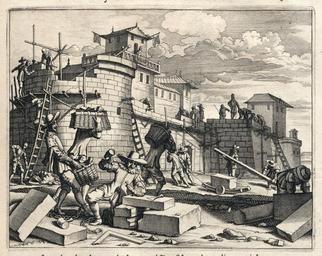 | Keywords: AMH-6980-KB Portuguese prisoners of war build a fort near Candij.jpg Artwork nl Portugese krijgsgevangenen bouwen een fort bij Candij nl Portugese krijgsgevangenen bouwen een fort bij Candij De Ceilonese vorst Vimala Dharma Suriya had de Portugezen overwonnen bij een veldslag in 1592 en zette de gevangenen in om een fort te bouwen en Portuguese prisoners of war build a fort near Candij The Ceylonese ruler Vimala Dharma Suriya defeated the Portuguese in a battle in 1592 and deployed the prisoners to build a fort Atlas of Mutual Heritage kb http //www atlasofmutualheritage nl/en/object/ id 6980 Source at the Atlas of Mutual Heritage en Subjects fortification Person building European Asians Africans survey / view nl Onderwerpen vesting Persoon gebouw Europeanen Aziaten Afrikanen overzicht / aanzicht circa 1672 Creator Johannes Janssonius Waasbergen nl Anoniem / Anonymous graveur / etser Johannes Janssonius Waasbergen uitgever en Anoniem / Anonymous engraver / etcher Johannes Janssonius Waasbergen publisher Institution Koninklijke Bibliotheek nl koperdruk op papier en copperplate printing on paper Size cm 13 17 accession number 189 A 6 deel II p 15 PD-Art-100 Dutch East India Company 1672 |