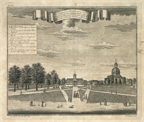 | Keywords: AMH-7017-KB View of the Batavia town hall.jpg Artwork nl Gezicht op het raadhuis in Batavia nl Gezicht op het raadhuis in Batavia Ein Prospect des Rathhauses in Batavia samt dessen umliegender Gegend und auf diesem Platz sich befindliche Baüme nach der Natur aufgenomen Legenda a das Rathhaus / b der Cijpiers Wohnungen zu beijden Seiten / c der Eingang in die Neue-Thorstrassen / d de neu gebaute Holländische Kirche / e Tamarinden-Baüme längst der grossen Revier / f Gebaüde längst dem Tijger-Canal oder der Teijgers-Gragt / g Baüme welche sich auf diesem Platz befinden / h die Teijgers-Gragt oder der Tijger-Canal / i Brücke nach der Nasse-Coningsstraat oder strass Linksboven No III Rechtsboven pag 7 Dezelfde afbeelding maar dan zonder bomen is Koninklijke Bibliotheek inv nr 2102 A 7 p 4 en View of the Batavia town hall Ein Prospect des Rathhauses in Batavia samt dessen umliegender Gegend und auf diesem Platz sich befindliche Baüme nach der Natur aufgenomen Key a das Rathhaus / b der Cijpiers Wohnungen zu beijden Seiten / c der Eingang in die Neue-Thorstrassen / d de neu gebaute Holländische Kirche / e Tamarinden-Baüme längst der grossen Revier / f Gebaüde längst dem Tijger-Canal oder der Teijgers-Gragt / g Baüme welche sich auf diesem Platz befinden / h die Teijgers-Gragt oder der Tijger-Canal / i Brücke nach der Nasse-Coningsstraat oder strass Top left No III Top right pag 7 This same print but this time without trees is Koninklijke Bibliotheek inv nr 2102 A 7 p 4 Atlas of Mutual Heritage kb http //www atlasofmutualheritage nl/en/object/ id 7017 Source at the Atlas of Mutual Heritage en Subjects survey / view banderole / cartouche / ornamentation key assembly hall / town hall church / parsonage Person Asians Africans European fauna building nl Onderwerpen overzicht / aanzicht banderol / cartouche / versiering legenda raadhuis / stadhuis kerk / pastorie Persoon Aziaten Afrikanen Europeanen fauna gebouw en Post this image is related to a VOC trading post called http //www atlasofmutualheritage nl/en/post/ id 328 Jakarta Inscription Ein Prospect des Rathhauses in Batavia samt dessen umliegender Gegend und auf diesem Platz sich befindliche Baüme nach der Natur aufgenomen author J W Heijdt ad viv del 1738 / A Hoffer sculp nl 1738 Creator Andreas Hoffer Creator Johann Wolfgang Heydt Creator Johann Carl Tetschner nl Andreas Hoffer graveur / etser Johann Wolfgang Heydt tekenaar Johann Carl Tetschner uitgever en Andreas Hoffer engraver / etcher Johann Wolfgang Heydt draughtsman Johann Carl Tetschner publisher Institution Koninklijke Bibliotheek nl koperdruk op papier en copperplate printing on paper Size cm 24 5 29 accession number 2102 A 7 p 7 PD-Art-100 Dutch East India Company 1738 |
