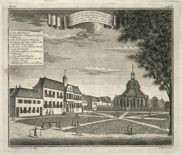 | Keywords: AMH-7018-KB View of the town hall and the new Dutch church in Batavia, seen from the Tijgersgracht canal.jpg Artwork nl Gezicht op het raadhuis en de nieuwe Hollandse kerk in Batavia vanaf de Tijgersgracht nl Gezicht op het raadhuis en de nieuwe Hollandse kerk in Batavia vanaf de Tijgersgracht Ein Prospect des Rathhauses und der neuen holländischen-Kirch in Batavia wie sich solches dem Tijger Canal gegen über praesentiret Linksboven No IV Rechtsboven pag 10 Legenda a das Rathhaus / b der Edlen-Compagnie-Cijpiers Wohnung / c der STadt-Cijpiers-Wohnung / d Eingang der Neuen Thors oder der Nieu-Port-Strasse / e die neue holländische-Kirche und Kirchhoff / f Kirchen-Lehrers und Dieners Wohnung / g Chinesische Haüser / h Tamarinden Baüm an der grossen Revier / i Rathhauss Plain oder Platz en View of the town hall and the new Dutch church in Batavia seen from the Tijgersgracht canal Ein Prospect des Rathhauses und der neuen holländischen-Kirch in Batavia wie sich solches dem Tijger Canal gegen über praesentiret Top left No IV Top right pag 10 Key a das Rathhaus / b der Edlen-Compagnie-Cijpiers Wohnung / c der STadt-Cijpiers-Wohnung / d Eingang der Neuen Thors oder der Nieu-Port-Strasse / e die neue holländische-Kirche und Kirchhoff / f Kirchen-Lehrers und Dieners Wohnung / g Chinesische Haüser / h Tamarinden Baüm an der grossen Revier / i Rathhauss Plain oder Platz Atlas of Mutual Heritage kb http //www atlasofmutualheritage nl/en/object/ id 7018 Source at the Atlas of Mutual Heritage en Subjects survey / view banderole / cartouche / ornamentation key assembly hall / town hall church / parsonage gate cemetery / graveyard house building Person fauna Asians Africans European nl Onderwerpen overzicht / aanzicht banderol / cartouche / versiering legenda raadhuis / stadhuis kerk / pastorie poort begraafplaats / kerkhof huis / woonhuis gebouw Persoon fauna Aziaten Afrikanen Europeanen en Post this image is related to a VOC trading post called http //www atlasofmutualheritage nl/en/post/ id 328 Jakarta Inscription Ein Prospect des Rathhauses und der neuen holländischen-Kirch in Batavia wie sich solches dem Tijger Canal gegen über praesentiret author J W Heydt ad viv del 1738 / A Hoffer sculp nl 1738 Creator Johann Wolfgang Heydt Creator Andreas Hoffer Creator Johann Carl Tetschner nl Johann Wolfgang Heydt tekenaar Andreas Hoffer graveur / etser Johann Carl Tetschner uitgever en Johann Wolfgang Heydt draughtsman Andreas Hoffer engraver / etcher Johann Carl Tetschner publisher Institution Koninklijke Bibliotheek nl koperdruk op papier en copperplate printing on paper Size cm 24 5 29 accession number 2102 A 7 p 10 PD-Art-100 Dutch East India Company 1738 |