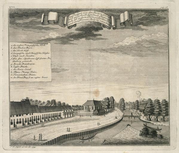 | Keywords: AMH-7020-KB View of the Gelderland bastion, a bastion of Batavia castle.jpg Artwork nl Gezicht op bastion Gelderland een bastion van het kasteel van Batavia nl Gezicht op bastion Gelderland een bastion van het kasteel van Batavia Ein Prospect von der Bastion Gelderland außerhalb der Stadt Batavia nach der äußern Portugießischen Kirch und dem Blauen Berg zu gezeichnet Linksboven No VI Rechtsboven pag 16 Legenda a die äußere Portugießische Kirch / b der Klocken Thurn / c der Kirch Hoff / d Europeische und Chinesische Häußer / e Wegh nach Jacatra / f Gou Gen Speelmans Lust Garten Badenburg genandt / g Arracks Brandereijen / h Passer Brücke / die Revier Crocol / k Kleine pinang Kräm / l Tamarinthen Bäum / m der Blaue Berg so zu zeiten brent en View of the Gelderland bastion a bastion of Batavia castle Ein Prospect von der Bastion Gelderland außerhalb der Stadt Batavia nach der äußern Portugießischen Kirch und dem Blauen Berg zu gezeichnet Top left No VI Top right pag 16 Key a die äußere Portugießische Kirch / b der Klocken Thurn / c der Kirch Hoff / d Europeische und Chinesische Häußer / e Wegh nach Jacatra / f Gou Gen Speelmans Lust Garten Badenburg genandt / g Arracks Brandereijen / h Passer Brücke / die Revier Crocol / k Kleine pinang Kräm / l Tamarinthen Bäum / m der Blaue Berg so zu zeiten brent Atlas of Mutual Heritage kb http //www atlasofmutualheritage nl/en/object/ id 7020 Source at the Atlas of Mutual Heritage en Subjects survey / view banderole / cartouche / ornamentation key banderole / cartouche / ornamentation bridge building church / parsonage tower country estate / resort ship / vessel Person fortification nl Onderwerpen overzicht / aanzicht banderol / cartouche / versiering legenda banderol / cartouche / versiering brug gebouw kerk / pastorie toren buitenplaats / lustoord schip / vaartuig Persoon vesting en Post this image is related to a VOC trading post called http //www atlasofmutualheritage nl/en/post/ id 328 Jakarta Inscription Ein Prospect von der Bastion Gelderland außerhalb der Stadt Batavia nach der äußern Portugießischen Kirch und dem Blauen Berg zu gezeichnet author J W Heijdt ad viv del 1739 / N Mettel sc nl 1739 Creator N Mettel Creator Johann Wolfgang Heydt Creator Johann Carl Tetschner nl N Mettel graveur / etser Johann Wolfgang Heydt tekenaar Johann Carl Tetschner uitgever en N Mettel engraver / etcher Johann Wolfgang Heydt draughtsman Johann Carl Tetschner publisher Institution Koninklijke Bibliotheek nl koperdruk op papier en copperplate printing on paper Size cm 24 5 29 accession number 2102 A 7 p 16 PD-Art-100 Gelderland Dutch East India Company 1739 Zion Church Jakarta Indonesia in the 18th century Batavia |