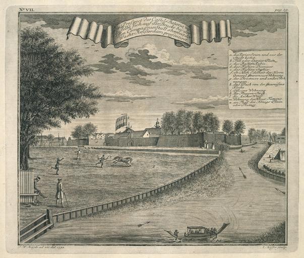 | Keywords: AMH-7021-KB View of Batavia castle from the bridge near the Company stables.jpg Artwork nl Gezicht op het kasteel van Batavia vanaf de brug bij de Compagniesstallen nl Gezicht op het kasteel van Batavia vanaf de brug bij de Compagniesstallen Ein Prospect des Castels Batavia wie dasselbe sich auf der Brucke beij der Edlen Compagnie Stall ohneweit der Wacht Amsterdam praesentiret Linksboven No VII Rechtsboven pag 19 Legenda a die Revier Soum und aus der Stadt komt / b Trill oder Exercier-Platz / c das Bastion Rubin / d das Bastion Diamant / f Sr Hoch Edelheit des Herrn General Gouverneurs Wohnung / g des Directeurs und andere Wohnungen / h das Dach von der Guarnisons Kirche / i Officiers Wohnung / k der Flaggen-Stock / l die Ancker-Werff / m Wohung des Hüner Fütterns / n ein Theil des Königs-Plain oder Platzes en View of Batavia castle from the bridge near the Company stables Ein Prospect des Castels Batavia wie dasselbe sich auf der Brucke beij der Edlen Compagnie Stall ohneweit der Wacht Amsterdam praesentiret Top left No VII Top rigth pag 19 Key a die Revier Soum und aus der Stadt komt / b Trill oder Exercier-Platz / c das Bastion Rubin / d das Bastion Diamant / f Sr Hoch Edelheit des Herrn General Gouverneurs Wohnung / g des Directeurs und andere Wohnungen / h das Dach von der Guarnisons Kirche / i Officiers Wohnung / k der Flaggen-Stock / l die Ancker-Werff / m Wohung des Hüner Fütterns / n ein Theil des Königs-Plain oder Platzes Atlas of Mutual Heritage kb http //www atlasofmutualheritage nl/en/object/ id 7021 Source at the Atlas of Mutual Heritage en Subjects survey / view banderole / cartouche / ornamentation key Person fauna building fortification house church / parsonage government building / residence ship / vessel Asians Africans tower nl Onderwerpen overzicht / aanzicht banderol / cartouche / versiering legenda Persoon fauna gebouw vesting huis / woonhuis kerk / pastorie gouvernementshuis / -gebouw schip / vaartuig Aziaten Afrikanen toren en Post this image is related to a VOC trading post called http //www atlasofmutualheritage nl/en/post/ id 328 Jakarta Inscription Ein Prospect des Castels Batavia wie dasselbe sich auf der Brucke beij der Edlen Compagnie Stall ohneweit der Wacht Amsterdam praesentiret author J W Heijdt ad viv del 1738 / A Hoffer sculp nl 1738 Creator Andreas Hoffer Creator Johann Wolfgang Heydt Creator Johann Carl Tetschner nl Andreas Hoffer graveur / etser Johann Wolfgang Heydt tekenaar Johann Carl Tetschner uitgever en Andreas Hoffer engraver / etcher Johann Wolfgang Heydt draughtsman Johann Carl Tetschner publisher Institution Koninklijke Bibliotheek nl koperdruk op papier en copperplate printing on paper Size cm 24 5 29 accession number 2102 A 7 p 19 PD-Art-100 Dutch East India Company 1738 Batavia Castle |