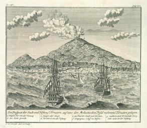 | Keywords: AMH-7111-KB View of the city of Ternate.jpg Artwork nl Gezicht op de stad Ternate nl Gezicht op de stad Ternate Ein Prospect der Stadt un Vestung Ternaten auf eine der Moluckischen Insul nahmens Ternaten gelegen Linksboven No CIV Rechtsboven pag 310 Legenda a Wasser Thor von der Vestung / b das Hoch-Gericht / c Haupt oder Hooft / d Vor Werck von der Vestung / e ein Theil der Stadt und Kirchen / f Compagnies Schiff im Hafen / g Mehrere zeit Brenender Berg Sehr nahe an der Vestung en View of the city of Ternate Ein Prospect der Stadt un Vestung Ternaten auf eine der Moluckischen Insul nahmens Ternaten gelegen Top left No CIV Top right pag 310 Key a Wasser Thor von der Vestung / b das Hoch-Gericht / c Haupt oder Hooft / d Vor Werck von der Vestung / e ein Theil der Stadt und Kirchen / f Compagnies Schiff im Hafen / g Mehrere zeit Brenender Berg Sehr nahe an der Vestung Atlas of Mutual Heritage kb http //www atlasofmutualheritage nl/en/object/ id 7111 Source at the Atlas of Mutual Heritage en Subjects survey / view ship / vessel anchorage / pier / harbour fortification building house church / parsonage court / judicial court tanck / well / watering hole Person nl Onderwerpen overzicht / aanzicht schip / vaartuig rede / haven / pier vesting gebouw huis / woonhuis kerk / pastorie gerechtsgebouw / rechtsinstantie tanck / waterplaats / put Persoon en Post this image is related to a VOC trading post called http //www atlasofmutualheritage nl/en/post/ id 651 Ternate Inscription Ein Prospect der Stadt un Vestung Ternaten auf eine der Moluckischen Insul nahmens Ternaten gelegen author J W Heijdt del et Sculp nl between 1735 1744 Creator Johann Carl Tetschner Creator Johann Wolfgang Heydt nl Johann Carl Tetschner uitgever Johann Wolfgang Heydt tekenaar en graveur en Johann Carl Tetschner publisher Johann Wolfgang Heydt draughtsman and engraver Institution Koninklijke Bibliotheek nl koperdruk op papier en copperplate printing on paper Size cm 25 28 5 accession number 2102 A 7 p 310 PD-Art-100 Dutch East India Company 1730s Ternate Indonesia |
