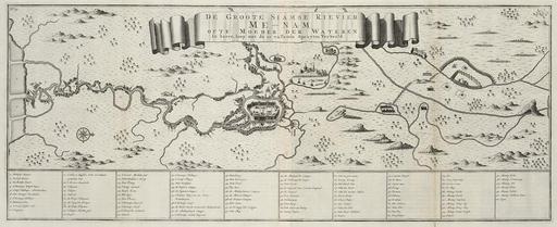 | Keywords: AMH-7231-KB Map of the river of Siam.jpg Artwork nl Kaart van de rivier van Siam nl Kaart van de rivier van Siam De Groote Siamse Rievier Me-Nam ofte Moeder der Wateren inharen loop met de in vallende Spruyten Verbeeld Op de kaart zijn legendanummers gegeven en verklaard De afbeelding is afkomstig uit het werk 'Oud en Nieuw Oost-Indiën' van François Valentyn Bij de riviermonding staat een Nederlandse vlag op een gebouw Dit is het Compagnies pakhuis en Map of the river of Siam De Groote Siamse Rievier Me-Nam ofte Moeder der Wateren inharen loop met de in vallende Spruyten Verbeeld The map is accompanied by a key and explanatory notes This plate is taken from the work 'Oud en Nieuw Oost-Indiën' by François Valentyn At the mouth of the river a Dutch flag flies from a building This is the Company storehouse Atlas of Mutual Heritage kb http //www atlasofmutualheritage nl/en/object/ id 7231 Source at the Atlas of Mutual Heritage en Subjects bird's-eye view / elevation elevation / bird's-eye view banderole / cartouche / ornamentation chart / map / plan key warehouse compass / dial building guard house / tollbooth fortification pagoda / temple mosque bazaar / market fence / kraal flora garden / ornamental garden nl Onderwerpen vogelvlucht / opstand opstand / vogelvlucht banderol / cartouche / versiering plattegrond / kaart legenda pakhuis kompas / windroos gebouw tolhuis / wachthuis vesting pagode / tempel moskee bazaar / markt omheining / kraal flora tuin / siertuin en Post this image is related to a VOC trading post called http //www atlasofmutualheritage nl/en/post/ id 755 Bangkok Inscription De Groote Siamse Rievier Me-Nam ofte Moeder der Wateren inharen loop met de in vallende Spruyten Verbeeld nl 1724 Creator J van Braam Creator Gerard onder de Linden nl Anoniem / Anonymous landmeter / kaartenmaker J van Braam uitgever Gerard onder de Linden uitgever en Anoniem / Anonymous land surveyor / mapmaker J van Braam publisher Gerard onder de Linden publisher Institution Koninklijke Bibliotheek nl gravure op papier en engraving on paper Size cm 31 76 5 accession number 185 A 5 dl III b II p 60 2 PD-Art-100 Maps of the Dutch East India Company - Thailand Old maps of Ayutthaya 1724 |