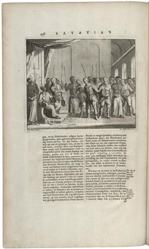 | Keywords: AMH-7250-KB Pieter van den Broecke taken captive by the king of Jakatra, 1619.jpg Artwork nl Pieter van den Broecke gevangen genomen door de koning van Jakatra 1619 nl Pieter van den Broecke gevangen genomen door de sultan van Mataram 1619 J P Coen besloot in 1619 dat Jakatra later Batavia een geschiktere basis voor de VOC op Java zou zijn dan Bantam en ging ertoe over deze stad in te nemen De sultan van Mataram onder wie Jakatra viel was het hier vanzelfsprekend niet mee eens en verzette zich hevig Van den Broecke was commandeur op Java en had net een vredesverdrag gesloten met de sultan van Mataram Deze nodigde Van den Broecke uit voor een pleziervaart en liet hem vervolgens gevangen nemen om de ontruiming van kasteel Batavia door de Hollanders af te dwingen Deze gaven hier echter niet aan toe wat aanleiding was voor nieuwe conflicten De afbeelding is afkomstig uit het werk 'Oud en Nieuw Oost-Indiën' van François Valentyn en Pieter van den Broecke taken captive by the sultan of Mataram 1619 J P Coen decided in 1619 that Jakatra later Batavia would be a more suitable base for the VOC on Java than Bantam and travelled there to conquer the city The sultan of Mataram within whose influence Jakatra fell was obviously opposed and put up fierce resistance Van den Broecke was a commander on Java and had just sealed a peace treaty with the sultan of Mataram The latter invited Van den Broecke to come on a pleasure cruise and subsequently had him taken hostage in order to force the Dutch to leave Batavia Castle However the Dutch did not accede to the demands which prompted fresh conflicts The plate is taken from the work 'Oud en Nieuw Oost-Indien' by Francois Valentyn Atlas of Mutual Heritage kb http //www atlasofmutualheritage nl/en/object/ id 7250 Source at the Atlas of Mutual Heritage en Subjects survey / view meeting / visit battle / taking / war fight interior Person Asians Africans European nl Onderwerpen overzicht / aanzicht ontmoeting / bezoek veldslag / oorlog strijd / inname interieur Persoon Aziaten Afrikanen Europeanen 1724 Creator Matijs Balen Creator Otto Elliger Junior Creator J van Braam Creator Gerard onder de Linden nl Matijs Balen tekenaar Otto Elliger Junior graveur / etser J van Braam uitgever Gerard onder de Linden uitgever en Matijs Balen draughtsman Otto Elliger Junior engraver / etcher J van Braam publisher Gerard onder de Linden publisher Institution Koninklijke Bibliotheek nl gravure op papier en engraving on paper Size cm 15 18 accession number 185 A 5 deel IV I p 438 PD-Art-100 Dutch East India Company 1724 Pieter van den Broecke Batavia |