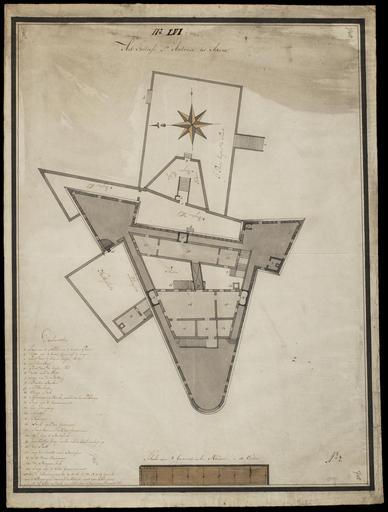 | Keywords: AMH-7681-NA Floor plan of Fort St. Antonie at Axim.jpg Artwork nl Plattegrond van het fort St Antonie te Axim en Floor plan of Fort St Antonie at Axim nl Plattegrond van het fort St Antonie te Axim Titel catalogus Leupe Het Fortress St Antonie tot Axim Het Fortress St Antonie tot Axim Notities verso no 10 reg 8 / 449 met vette cijfers gestempeld op een etiketje Legenda Declaratie / 1 Trap van 't strand nae 't buyten Plein / 2 ditto nae 't boven crom of de Tuyn / 3 Poort door 't kleyne buyten Werkje / 4 Schilder Huys / 5 Poort door de buyten Wal / 6 ditto van de Wagt / 7 Trap nae de Battery / 8 Soldaeten Keuken / 9 Schilder huys / 10 Vlagge Stok / 11 's Gouverneurs Keuke waeronder Een Pakhuys / 12 Trap nae 't Gouvernement / 13 Een Doorgang / 14 Spintje / 15 Kaamer / 16 Zaal van den Gouverneur / 17 Slaap kaamer van den Gouverneur / 18 _ 18 _ zyn 2 Bortessies / 19 Een houten brug welke van de zaal overlegt op / 20 Een Platt / 21 Nog Een Zoort van Bortessie / 22 23 twee Kaamers / 24 de Reegen-bak / 25 Trap nae 't oude Gouvernement / Nota de Gebouwen van 13 14 15 16 17 20 22 23 zyn alle van 3 Verdiepingen waervan de onderste meest voor Pakhuysen gebruykt de tweeden ten deele van Bedienten Guarinisoen bewoont word Rechtsonder No 7 Middenboven 17 LVI Op verschillende plekken op de kaart 748 in potlood en Floor plan of Fort St Antonie at Axim Title in the Leupe catalogue Het Fortress St Antonie tot Axim Het Fortress St Antonie tot Axim Notes on reverse no 10 reg 8 / 449 stamped in bold figures on a small label Key Declaratie / 1 Trap van 't strand nae 't buyten Plein / 2 ditto nae 't boven crom of de Tuyn / 3 Poort door 't kleyne buyten Werkje / 4 Schilder Huys / 5 Poort door de buyten Wal / 6 ditto van de Wagt / 7 Trap nae de Battery / 8 Soldaeten Keuken / 9 Schilder huys / 10 Vlagge Stok / 11 's Gouverneurs Keuke waeronder Een Pakhuys / 12 Trap nae 't Gouvernement / 13 Een Doorgang / 14 Spintje / 15 Kaamer / 16 Zaal van den Gouverneur / 17 Slaap kaamer van den Gouverneur / 18 _ 18 _ zyn 2 Bortessies / 19 Een houten brug welke van de zaal overlegt op / 20 Een Platt / 21 Nog Een Zoort van Bortessie / 22 23 twee Kaamers / 24 de Reegen-bak / 25 Trap nae 't oude Gouvernement / Nota de Gebouwen van 13 14 15 16 17 20 22 23 zyn alle van 3 Verdiepingen waervan de onderste meest voor Pakhuysen gebruykt de tweeden ten deele van Bedienten Guarinisoen bewoont word Bottom right No 7 Top centre 17 LVI Inscribed in various places on the chart 748 in pencil Atlas of Mutual Heritage na http //www atlasofmutualheritage nl/en/object/ id 7681 Source at the Atlas of Mutual Heritage - http //www gahetna nl/collectie/archief/inventaris/index/eadid/4 VEL/inventarisnr/748/level/file Source at the Nationaal Archief en Subjects chart / map / plan compass / dial key warehouse building fortification garden / ornamental garden gate tanck / well / watering hole nl Onderwerpen plattegrond / kaart kompas / windroos legenda pakhuis gebouw vesting tuin / siertuin poort tanck / waterplaats / put en Post this image is related to a WIC trading post called http //www atlasofmutualheritage nl/en/post/ id 685 Axim Inscription Het Fortress St Antonie tot Axim nl 1791 nl Anoniem / Anonymous landmeter / kaartenmaker en Anoniem / Anonymous land surveyor / mapmaker Institution Nationaal Archief nl pen op papier en pen on paper Size cm 66 49 accession number NL-HaNA_4 VEL_748 old number VEL0748 PD-Art-100 Maps of the West-Indische Compagnie Fort San Antonio Ghana 1791 |